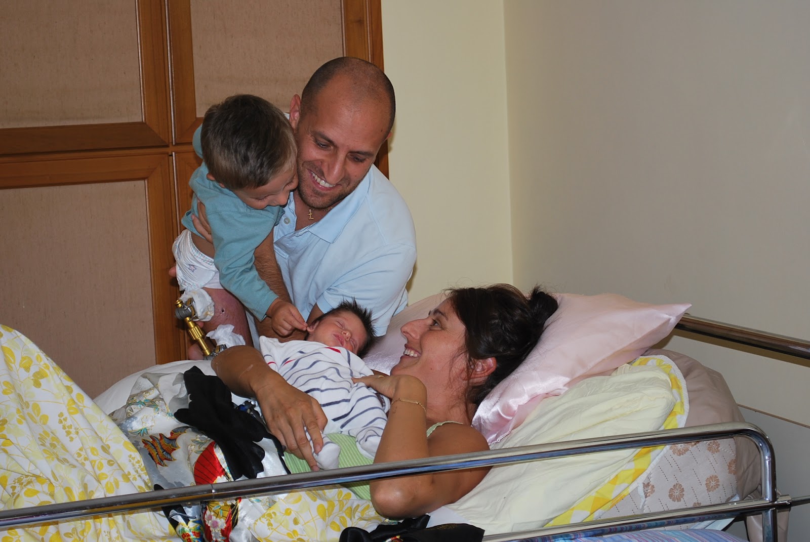 We had borrowed a special hospital bed from someone which has a special massage mattress to make sure my bed sores didn't come back. Oh, I didn't mention my episode in the hospital with horrific bed sores which were the fault of the nasty nursing staff. As I write I am still in that bed, still in that bedroom, still bedridden and waiting for my hospital check up on the 1st of October. Time goes so slowly when you are on your back and unable to move. At least I am with my family and bel bambino can get to know his little sister.